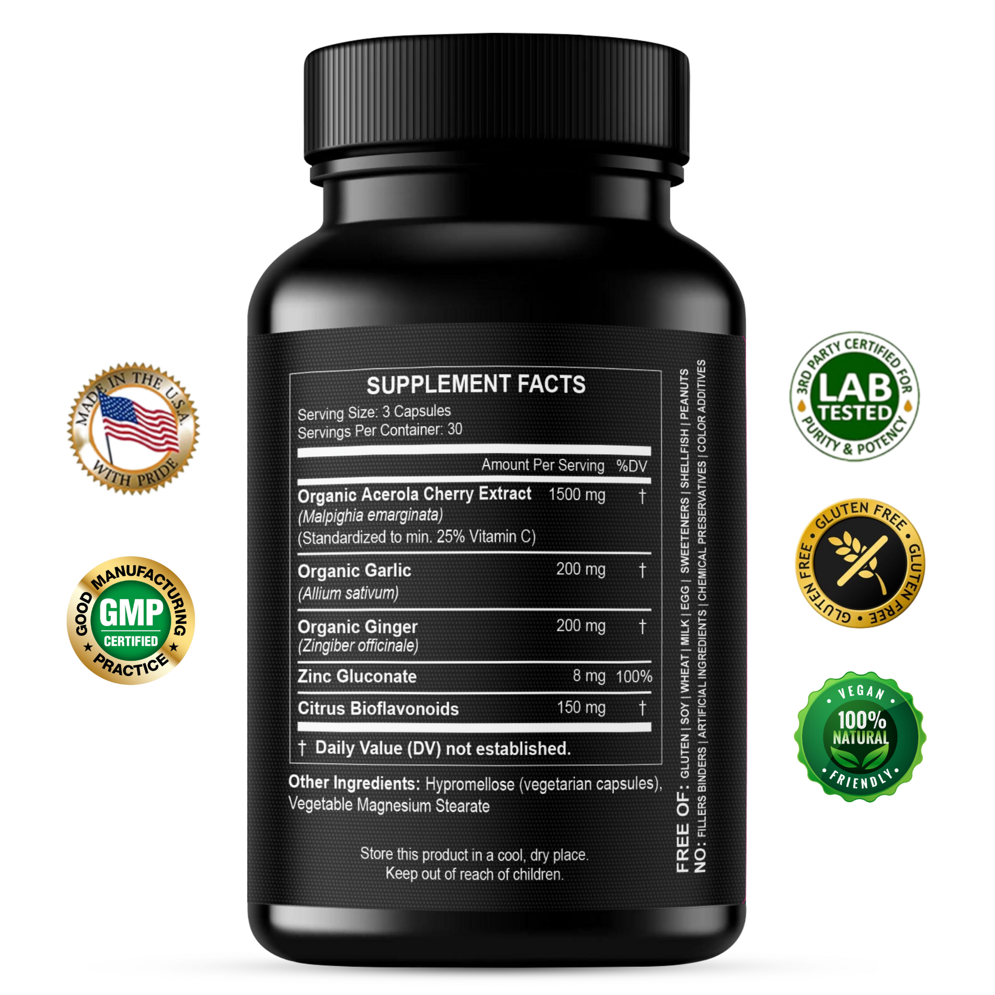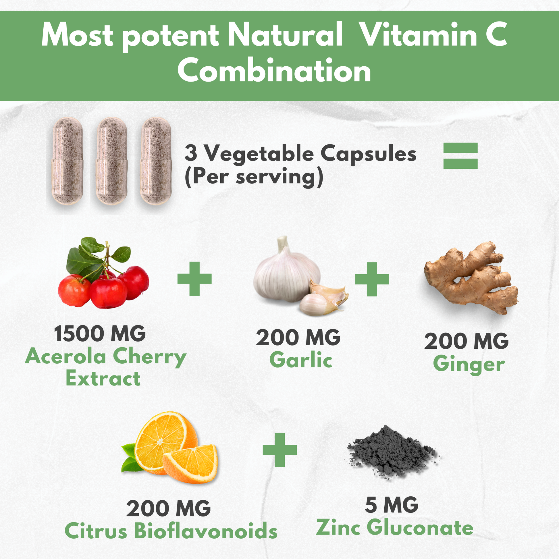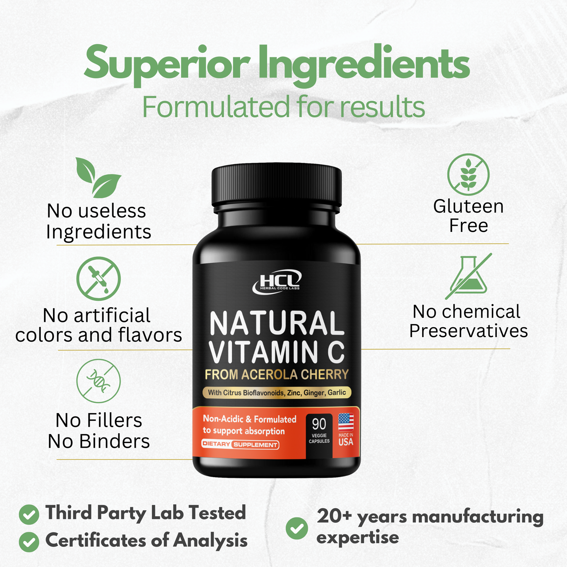 ✔ Our Vitamin C supplement is made from Acerola Cherries Fruit Extract - standardized to 25% high potency Vitamin C and contains a full spectrum of synergistic constituents the way nature intended.